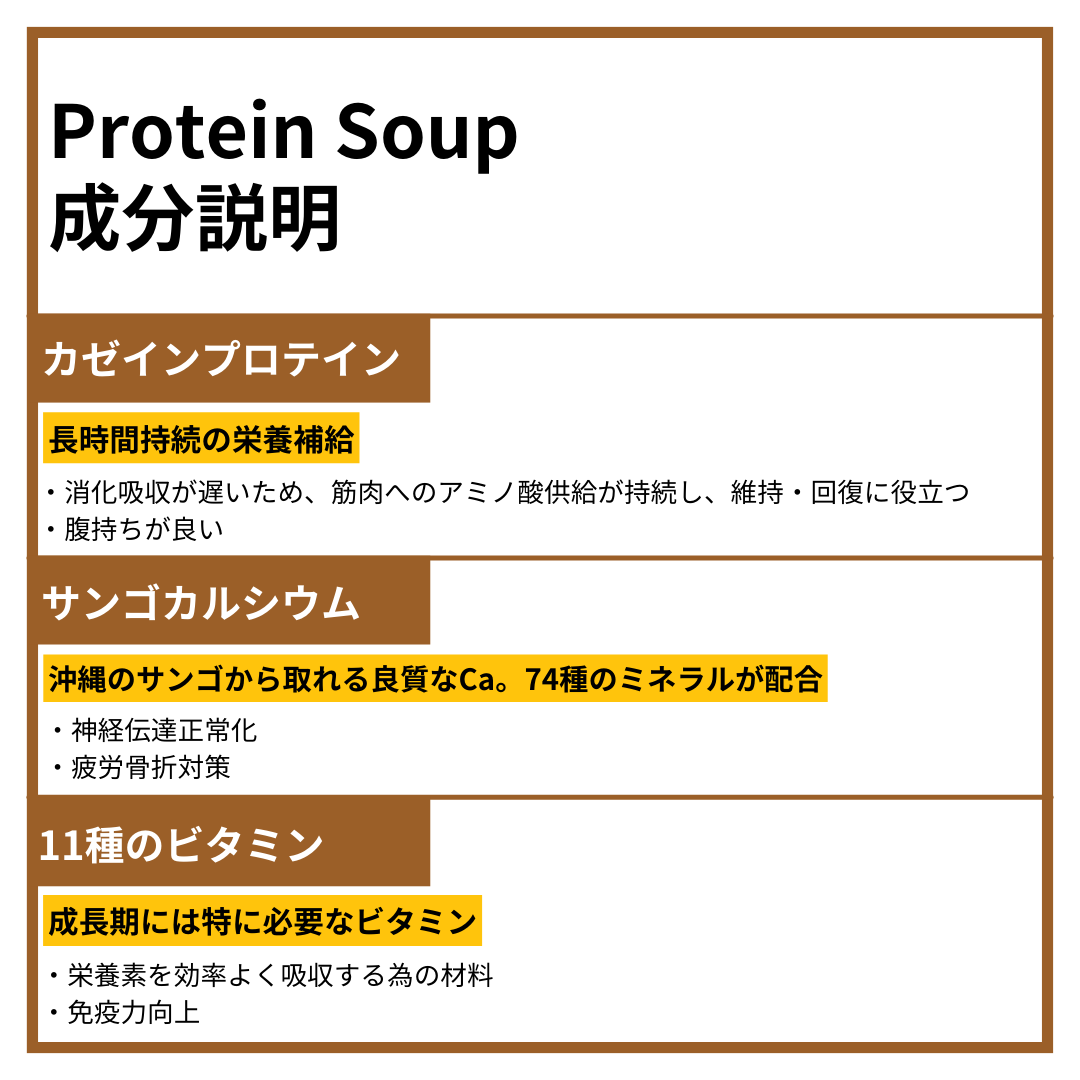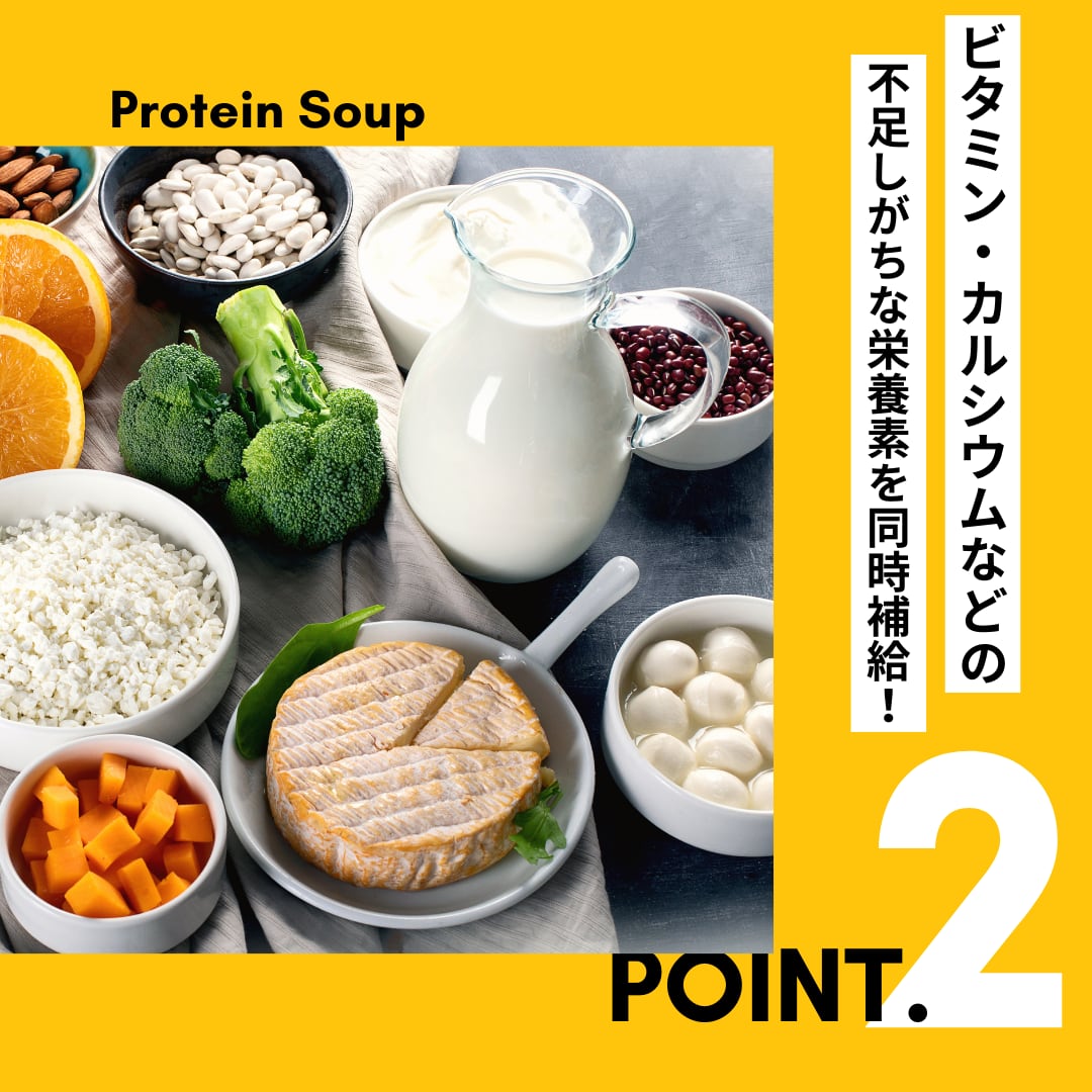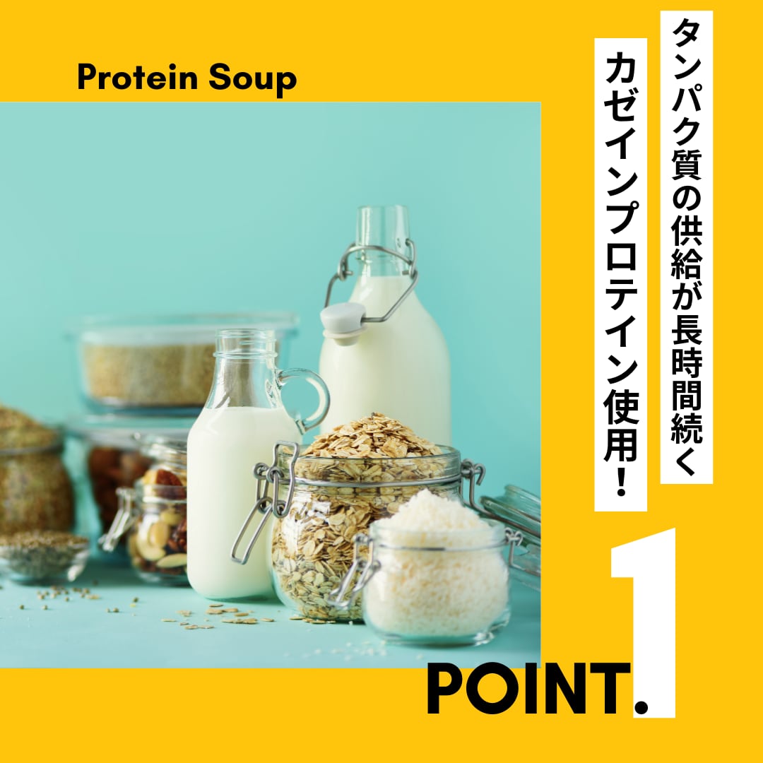 タンパク質の供給が長時間続く“カゼインプロテイン”を使用したスープ。